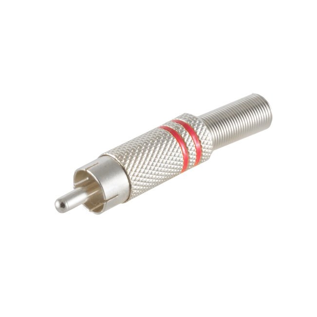 Cinchstecker Lötversion, Metall silber, Ring rot