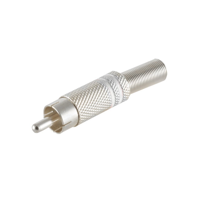 Cinchstecker Lötversion, Metall silber, Ring weiß