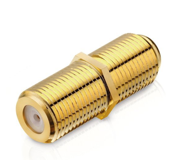 Adapter F-Buchse / F-Buchse Antennenadapter mit zwei identischen Anschlüssen, der deshalb Doppelbuchse oder häufig auch als Gender Changer sowie Verbinder oder Koppler bezeichnet wird.