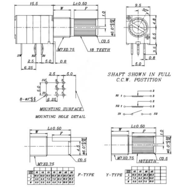 Potentiometer stereo mit Schalter und Zentralbefestigung
