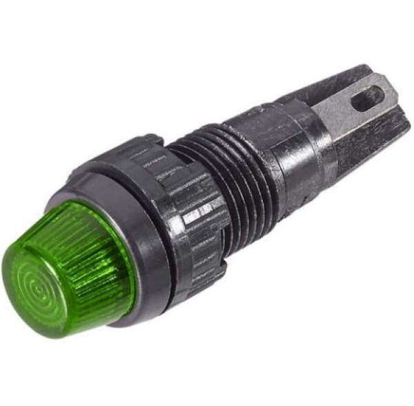 RAFI 1.66.001.011/1402, Signalleuchten mit Lampenfassung - W 2 x 4,6d, 9,1 mm, Blende rund vorstehend, grün.