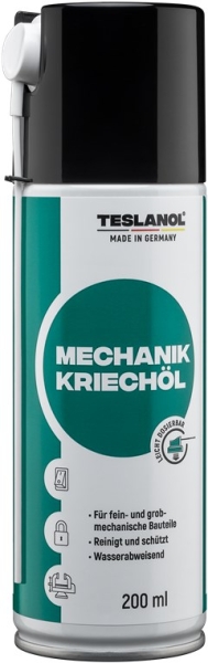 Löse- und Schmiermittel mit Kriechwirkung, verwendbar für alle Feinmechaniken, Schlösser, mechanischen Präzisionsinstrumente usw., sowie in der Elektrik an Schaltern, Relais und Kontakten, unterwandert Feuchte, schützt vor Korrosionen, löst verharzte Öle und Fette, verhindert neue Verharzungen, nicht alternd, druckfest, staubabweisend, säurefrei (pH-Wert 7,0).